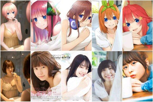 說到性感的香菜就不得不想到這張照片,對應的還有《五等分的花嫁》一花版本。